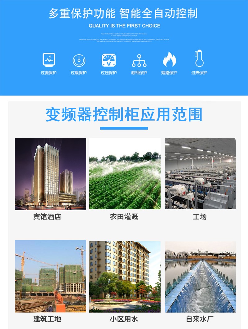 支持多種控制模式(如液位、壓力、溫度、時間控制),具備自動巡檢、故障記憶、遠程監控、定時換泵、小流量休眠等功能,減少人工干預,實現無人值守 。