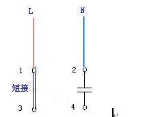 當兩繞組完全一樣,電機可能是三端子接線,1,3為兩繞組的公共接線端,接交流電源的L, 2/4端子之間聯有啟動電容, 如果交流電源的N端接端子2為正轉,則N改接端子4為反轉;如果是四端子,見圖四接線;